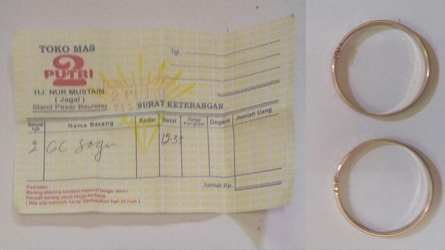 Dari hasil penyidikan, pelaku mengakui telah menjual dua gelang emas milik korban di toko emas “Dua Putri” di Pasar Desa Pasinan Kecamatan baureno dan uang hasil penjualan emas serta uang milik korban telah habis dipakai untuk membayar hutang dan belanja.
