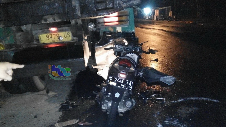 Bojonegoro Kota - Konsentrasilah saat anda berkendara di jalan raya, kalau tidak, anda bisa celaka. Seperti kecelakaan yang terjadi di jalan raya Bojonegoro-Nganjuk, turut wilayahh Desa Ngumpakdalem Kecamatan Dander Kabupaten Bojonegoro, pada Rabu (06/12/2017) sekira pukul 20.30 WIB tadi malam. Diduga pengendara sepeda motor kurang konsentrasi, menabrak dari belakang kendaraan truk yang berhenti didepannya. Akibatnya pengendara sepeda motor mengalami luka berat dan meninggal dunia di lokasi kejadian.