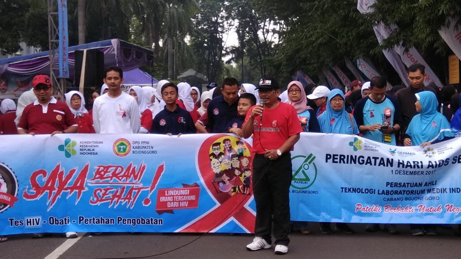 Bojonegoro Kota - Tidak bisa dipungkiri bahwa dari tahun ke tahun penyebaran penyakit HIV AIDS menunjukkan peningkatan. Oleh karena itu diharapkan bahwa salah satu upaya yang bisa dilakukan adalah dengan mengurangi penyebaran penyakit mematikan ini dan bagaimana upaya pencegahan penularan. Demikian diantara sambutan Wakil Bupati Bojonegoro Drs H Setyo Hartono MM, saat memberangkatkan acata jalan sehat dalam memperingati haru AIDS sedunia yang digelar oleh KPA Bojonegoro dan Aliansi Pita Merah Kabupaten Bojonegoro, Minggu (10/12/2017) pagi tadi.