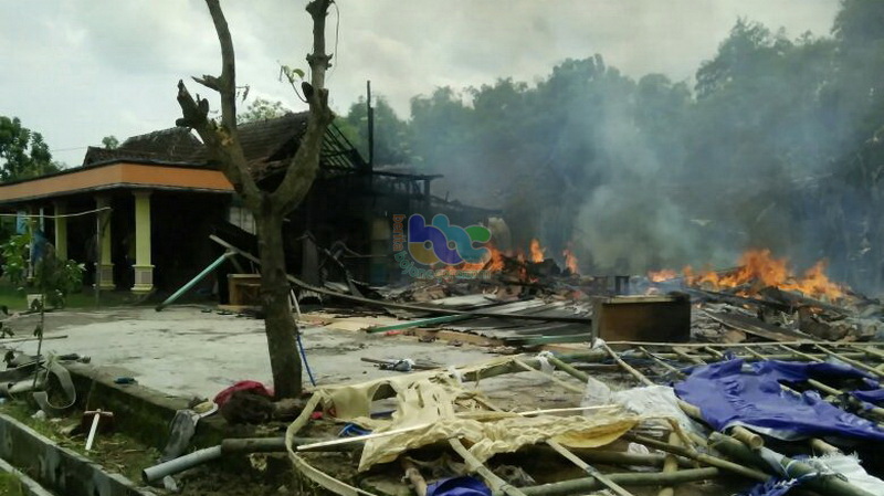 Bojonegoro (Gayam) - Kebakaran hebat menghanguskan 3 (tiga) rumah milik Sutikno (64), Supriyadi (29) dan rumah milik Suparman (39), ketiganya warga Dusun Tenggor Desa Sudu RT 001 RW 002 Kecamatan Gayam Kabupaten Bojonegoro, pada Minggu (17/12/2017) sekira pukul 10.30 WIB siang tadi. Diduga sumber api berasal dari percikan bunga api dari knalpot mesin penggiling tatal kain (bahan isi bantal atau kasur) yang menyambar ke tatal kain. Akibat kejadian tersebut total kerugian diperkirakan mencapai Rp 600 juta.