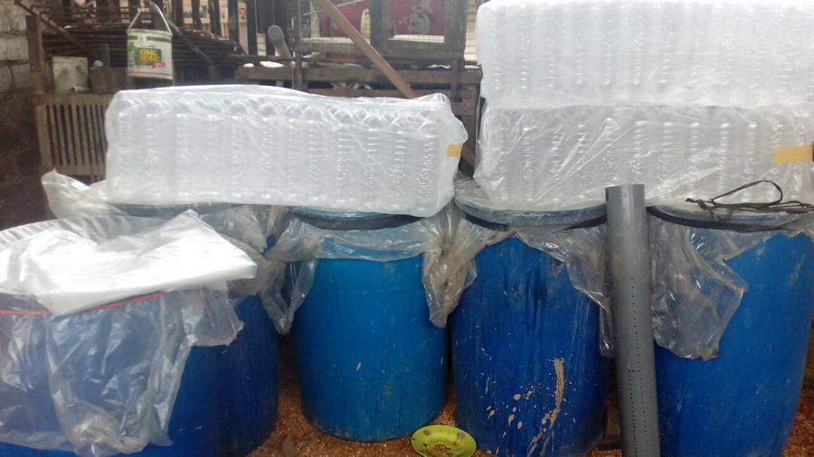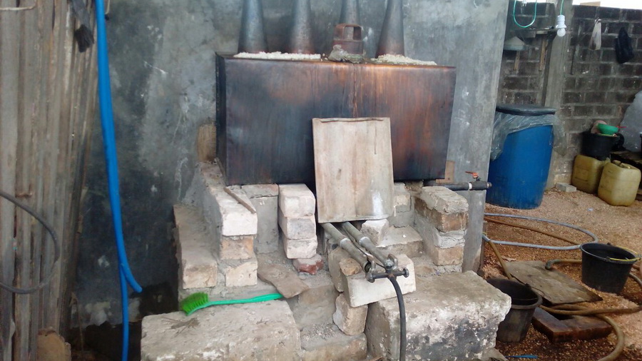 Agar bau arak tidak tercium dan aman dari penglihatan warga sekitar, tersangka memproduksi arak di rumah belakang kandang kambing miliknya,