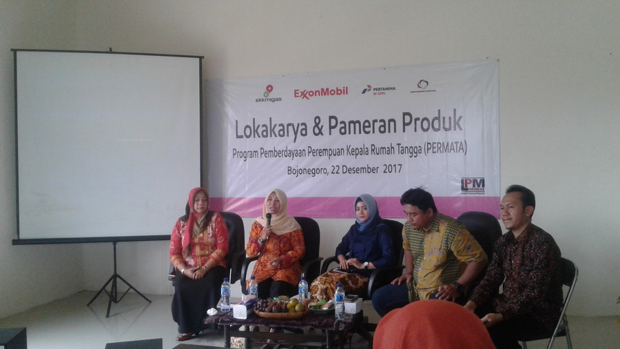 Bojonegoro (Kota) - Lembaga Pemberdaya Masyarakat (LPM) Indonesia didukung penuh Exxon Mobil Cepu Limited (EMCL) menggelar lokakarya dan pameran produk program pemberdayaan perempuan kepala tumah tangga (Permata) Kabupaten Bojonegoro, di Dinas Koperasi dan UKM, Jalan Patimura Bojonegoro, Jum'at (22/12/2017).
