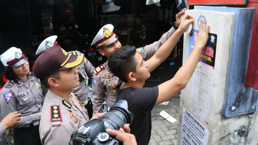 Pada sosialisasi juga dilakukan penempelan stiker larangan penggunaan knalpot brong yang dilakukan oleh Kapolres, Kasat Lantas dan anggota Dikyasa Sat Lantas di sejumllah bengkel dan servis kendaraan bermotor. (*/imm)