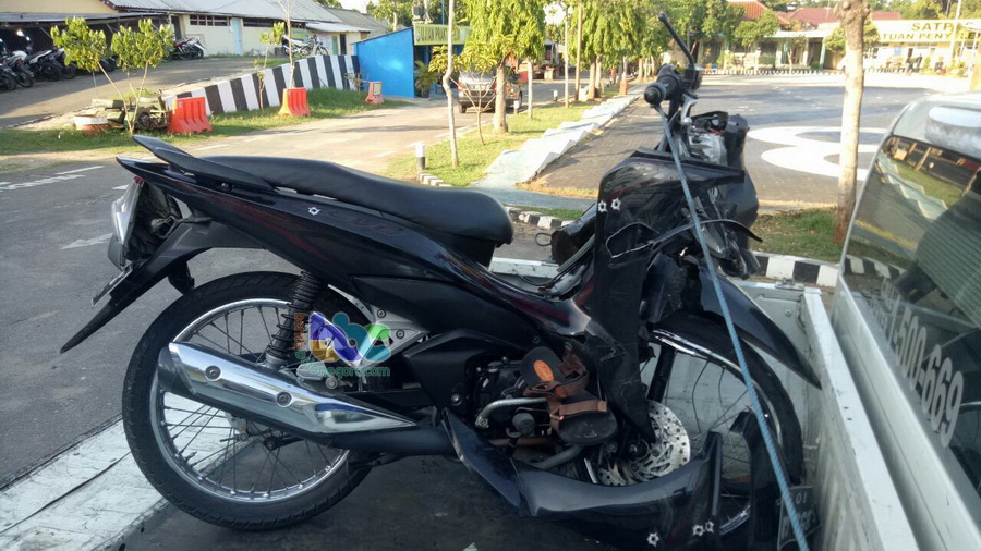 “Saat itu pengemudi berjalan di lajur kanan, mendahului beberapa kendaraan di depannya, sehingga menabrak sepeda motor yang berjalan dari arah berlawanan tersebut.” terang Iptu Nungki.