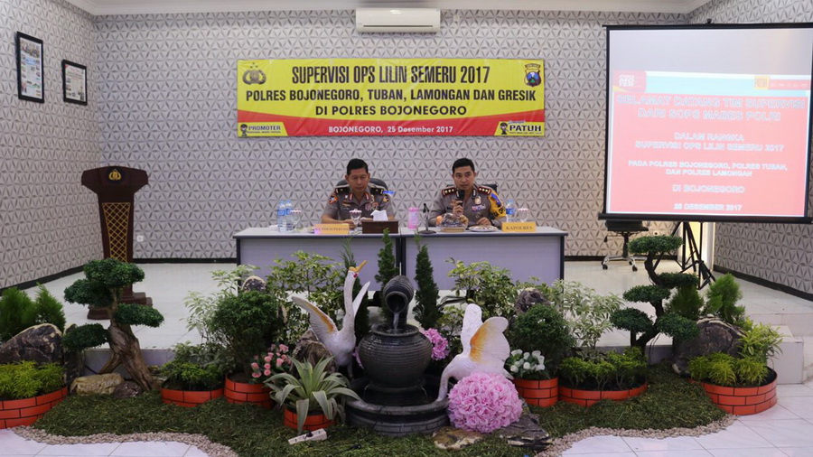 Bojonegoro Kota - Untuk melihat sejauh mana penggelaran Operasi Lilin Semeru 2017, Tim supervisi Ops Lilin 2017 dari Asops Mabes Polri yang dipimpin Karokerma KL Sops Polri, Brigjen Pol Widiyarso Herry Wibowo, pada Senin (25/12/2017), lakukan supervisi ke sejumlah Polres, yang diawali dari Polres Bojonegoro.