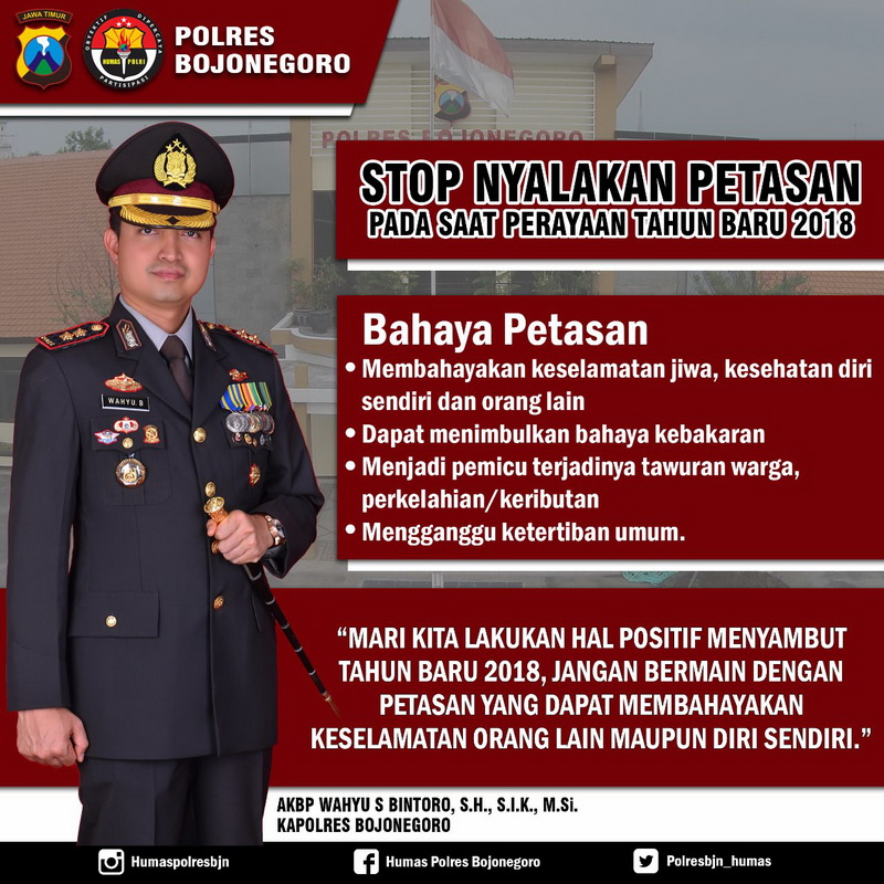 Polres Bojonegoro Larang Adanya Bunyian Mercon Pada Malam Pergantian Tahun