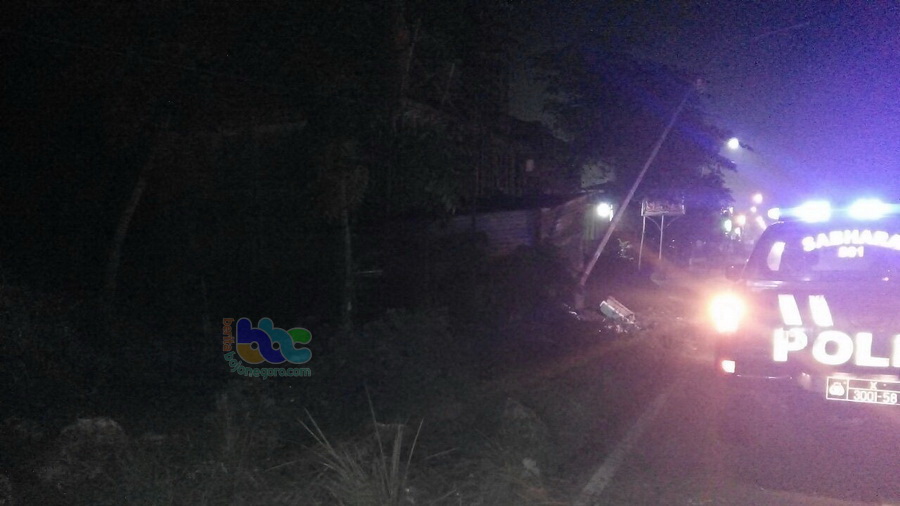 Bojonegoro (Kalitidu) - Kecelakaan tunggal terjadi pada Minggu (31/12/2017) sekira pukul 03.40 WIB, di jalur Bojonegoro-Cepu tepatnya di jalan raya turut Desa Pungpungan Kecamatan Kalitidu Kabupaten Bojonegoro. Diduga pengemudi truk mengantuk sehingga kendaraan yang dikemudikannya oleng ke kiri dan menabrak tiang lampu penerangan jalan umum (PJU). Tidak ada korban jiwa dalam laka lantas tersebut dan tiang lampu PJU yang ditabrak serta bagian depan truk mengalami kerusakan.