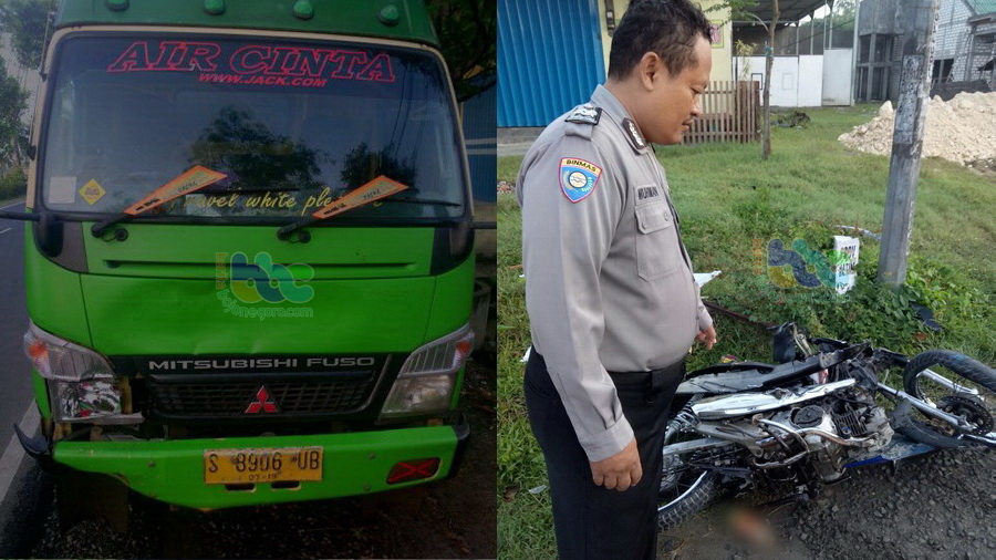 Bojonegoro (Balen) - Peristiwa kecelakaan yang menyebabkan korban jiwa kembali terjadi di jalan raya Bojonegoro-Babat, turut wilayah Desa Margomulyo Kecamatan Balen Kabupaten Bojonegoro pada Kamis (04/01/2018) sekira pukul 05.30 WIB pagi tadi. Sepeda motor yang berjalan dari jalan poros desa dan hendak menyeberang jalan raya, ditabrak truk tangki yang melaju dengan kecepatan tinggi, akibatnya pengendara motor tersebut mengalami luka-luka dan meninggal dunia ditempat kejadian.