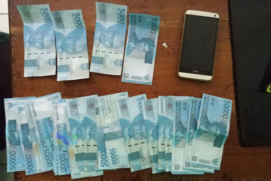 Selain pelaku, barang bukti yang berhasil diamankan petugas yaitu uang palsu pecahan Rp 50 ribu sebanyak 44 lembar yang disita dari korban Wahyu Wicaksono, uang palsu pecahan Rp 50 ribu sebanyak 24 lembar yang disita dari korban Sohibul Ibad dan 1 buah HP Merk NTC warna silver milik pelaku yang digunakan untuk berkomunikasi dengan para korban.