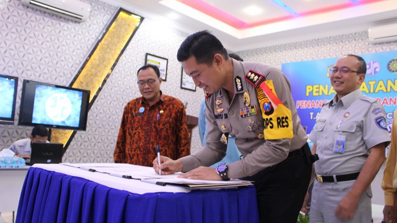 Selanjutnya bertempat di Aula Parama Satwika Polres Bojonegoro Polres Bojonegoro pada Kamis (11/01/2018) pagi, lakukan penandatanganan MoU (Memorandum of Understanding) dengan pihak Jasa Raharja dan 4 (empat) rumah sakit, diantaranya RS Bhayangkara Wahyu Tutuko, RSUD Sosodoro Djatikoesoemo, RS Aisyiah dan RSI Muhammadiyah Sumberrejo, sebagai tindak lanjut dari implementasi aplikasi TACS tersebut.