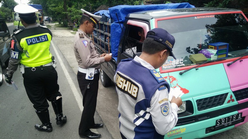 Bojonegoro - Dalam rangka menciptakan situasi kamseltibcar lantas yang kondusif, Satlantas Polres abojonegoro bersama Bapenda dan Dinas Perhubungan (Dishub) Kabupaten Bojonegoro, pada Jum'at (12/01/2018) mulai pukul 14.00 WIB hingga 16.00 WIB, laksanakan razia gabungan kendaraan bermotor di jalan Raya Bojonegoro - Surabaya tepatnya di jalan raya depan Mako Polsek Balen Kabupaten Bojonegoro.