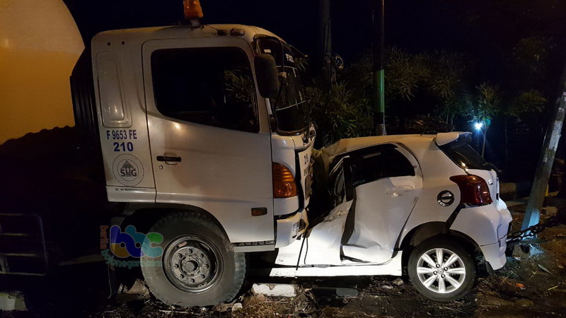 Tuban (Widang) - Kecelakaan antara truk semen curah (bulk) dengan mobil Toyota Yaris terjadi di jalur pantura, tepatnya di jalan raya Tuban - Widang KM 23-24, turut wilayah Desa Widang Kecamatan Widang Kabupaten Tuban, pada Rabu (31/01/2018) sekira pukul 17.30 WIB petang tadi. Diduga pengemudi truk semen curah yang hendak mendahului bus yang berjalan searah di depannya kurang memperhatikan arus lalu-lintas di depannya, sehingga bertabrakan dengan Toyota Yaris yang melaju dari arah berlawanan. Akibatnya, pengemudi pengemudi Toyota Yaris meninggal dunia di lokasi kejadian serta kedua kendaraan mengalami kerusakan yang cukup parah.