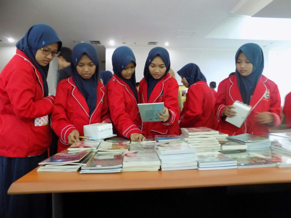 Foto sejumlah pengunjung remaja melihat-lihat lapak buku penulis Bojonegoro.