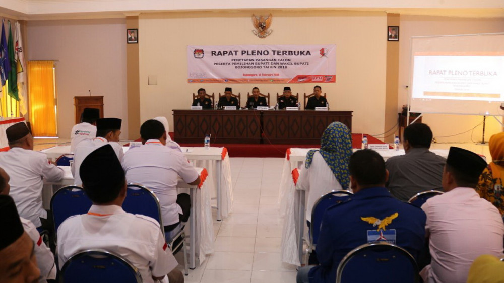 Dari hasil rapat pleno yang berjalan dengan aman dan lancar tersebut, KPUD Bojonegoro menetapkan bahwa yang berhak mengikuti kontestasi Pemilukada serentak 2018 Kabupaten Bojonegoro terdapat 4 paslon yaitu, (1). Dra Hj Mahfudoh Suyoto MSi - Drs Kuswiyanto MSi; (2). Dra Hj Anna Muawanah - Drs Budi Irawanto MPd; (3). Drs H Soehadi Moeljono MM - Hj Mitroatin SPd dan (4). Drs H Basuki MPd MPdi - Pudji Dewanto SH MM. (*/mol)