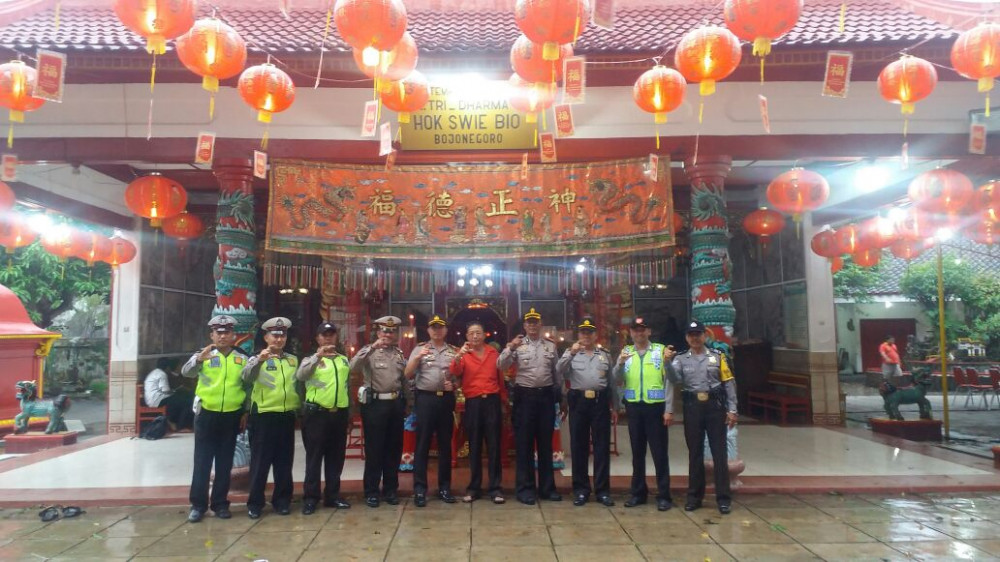 Bojonegoro Kota - Kapolres Bojonegoro AKBP Wahyu S Bintoro SH SIK MSi, pada Kamis (15/02/2018) sore tadi, pimpin langsung jalannya pengamanan perayaan tahun baru Imlek 2569, di Klenteng Hok Swie Bio Bojonegoro, yang merupakan pusat peribadatan sekaligus pusat perayaan tahun baru Imlek umat Tri Dharma di Kabupaten Bojonegoro.