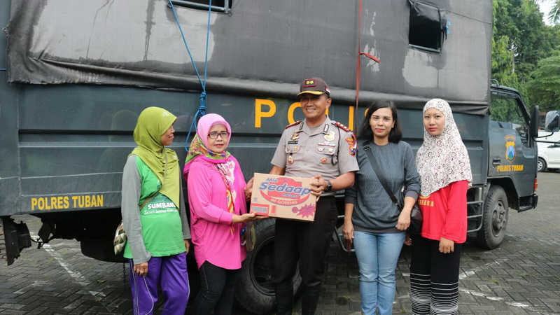 Dua truk berisi paket sembako masing-masing dari Polres Lamongan dan Polres Tuban tiba di Posko Bencana pada Jum'at (23/02/2018) sekira pukul 15.00 WIB sore, sedangkan satu truk bantuan dari Polres Gresik tiba pada pukul 18.00 WIB petang.