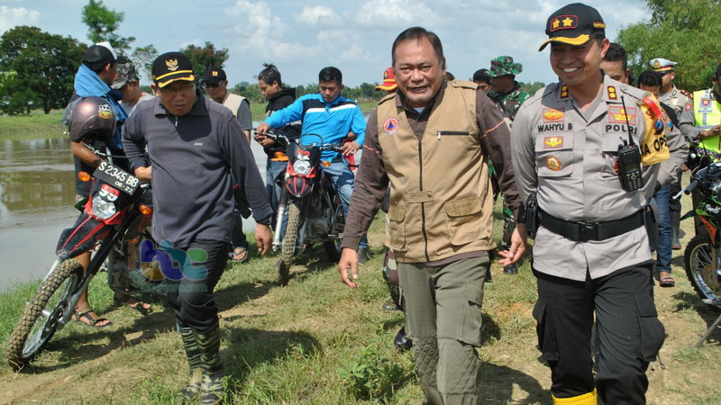 Kapolres dan Bupati Bojonegoro Dampingi Kepala BPBD Jatim Tinjau Lokasi Tanggul Jebol