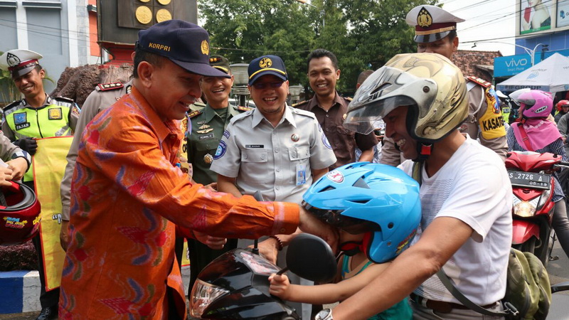 Kampanye Keselamatan Berlalu-Lintas, Polres Bojonegoro dan Forpimda Bagi Helm Gratis