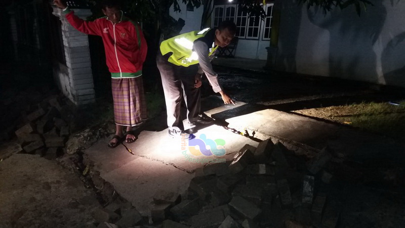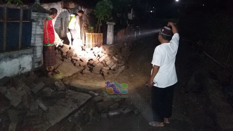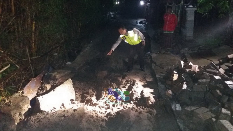 “Derasnya air menggerus dan merusak jalan paving dengan lebar tiga meter dan sepanjang kurang lebih lima belas meter, serta mengakibatkan longsor di beberapa titik jalan,” jelas Kapolsek.