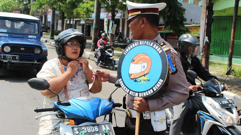 "Bagi pengendara yang belum meng-klik-kan tali pengaman helmnya, kami beri himbauan, begitu juga dengan sepeda motor yang belum menyalakan lampu utama pada siang hari," jelas AKP Aristianto.