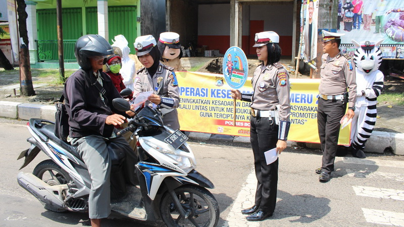 "Kami gunakan ikon andalan Polres Bojonegoro yaitu boneka zebra dan pocong untuk menarik perhatian pengguna jalan, sehingga materi yang kami sampaikan jadi lebih mengena," pungkas AKP Aristianto. (red/imm)