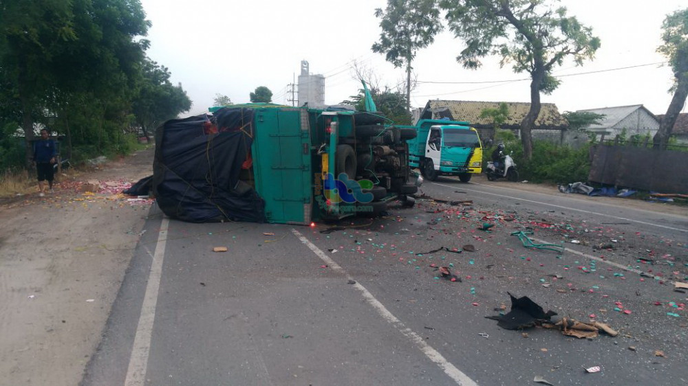 Setelah terjadi benturan, kendaraan truk Mitsubishi oleng hingga akhirnya terguling di badan jalan. Sedangkan kendaraan truk tronton juga oleng ke kanan dan nyaris menabrak kendaraan truk tronton lain yang sedang berhenti di bahu jalan.