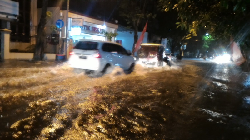 “Sudah biasa mas, setiap hujan lebat pasti banjir. Hanya saja ini tadi lumayan besar, hingga masuk ke warung,” terang Kang Sholeh, salah satu warga yang memiliki warung makan di Jalan Panglima Sudirman.
