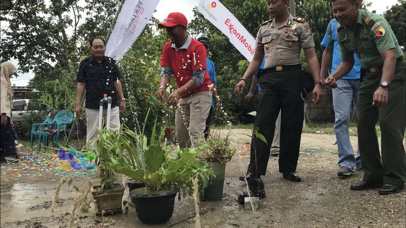 Bojonegoro (Gayam) - ExxonMobil Cepu Limited (EMCL) menyerah terimakan bantuan fasilitas air bersih kepada masyarakat Desa Gayam Kecamatan Gayam Kabupaten Bojonegoro, pada Selasa (13/03/2018). Serah terima ini sekaligus penanda berakhirnya Program Penyediaan Fasilitas Air Bersih Berbasis Pengelolaan Masyarakat di Dusun Sumurpandan, desa setempat.