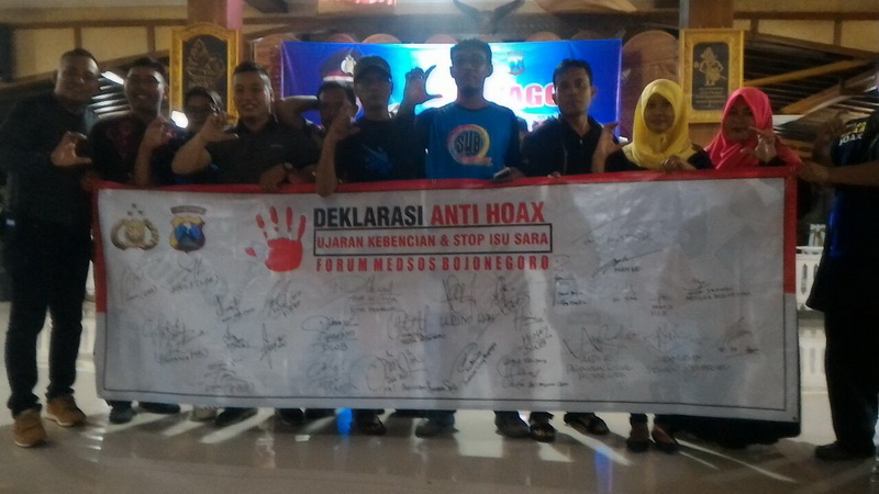 Dalam giat tersebut, Kapolres mengajak para admin atau pengurus dari sejumlah grup Facebook serta perwakilan beberapa komunitas yang ada di Bojonegoro, untuk Deklarasi Anti Hoax, Ujaran Kebencian dan Stop Isu Sara.