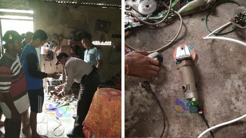 Kapolsek menambahkan, setelah pihaknnya menerima laporan adanya kejadian tersebut, Kapolsek bersama anggota langsung mendatangi tempat tejadian perkara (TKP), guna melakukan identifikasi dan olah TKP. Berdasarkan pemeriksaan di TKP, di sekitar korban terdapat alat gerinda pemotong keramik, kabel dan stopkontak dan dinamo serta sejumlah peralatan.