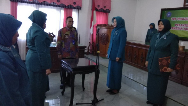 Rangkaian prosesi pelantikan yakni Kata-kata pelantikan yang dilakukan oleh PLt Ketua Tim Penggerak PKK Kabupaten Bojonegoro, Ibu Narty Suprianto SE, yang diteruskan dengan penandatangan berita acara pelantikan dan serah terima jabatan Ketua Tim Penggerak PKK Kecamatan yang lama kepada pejabat yang baru.