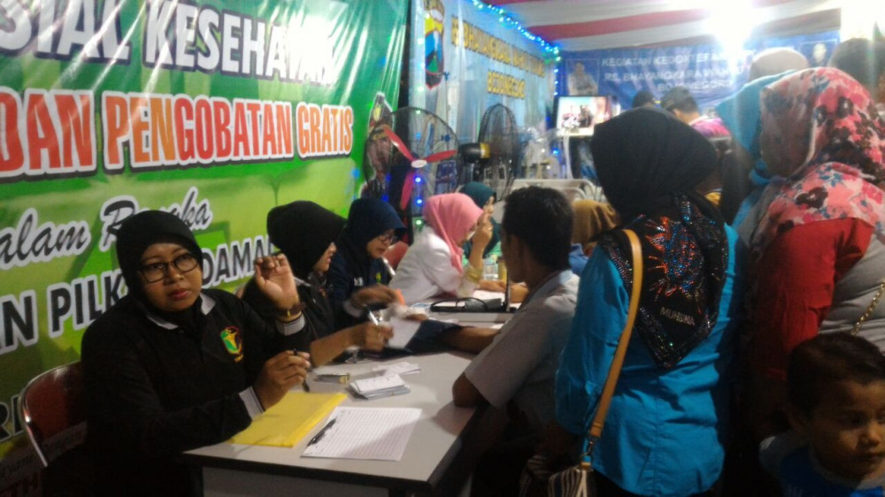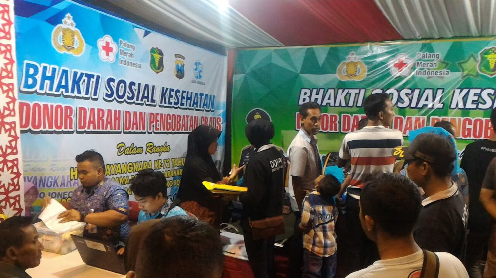 Bojonegoro Kota - Di antara sejumlah stan Police Expo Polres Bojonegoro, yang digelar pada Sabtu (07/04/2018) malam, di Alun-alun Kota Bojonegoro, terdapat satu stan yang paling banyak didatangi pengunjung, yaitu stan Rumah Sakit Bhayangkara Wahyu Tutuko Bojonegoro yang membuka bakti sosial kesehatan donor darah dan pengobatan gratis.
