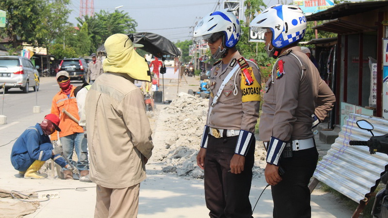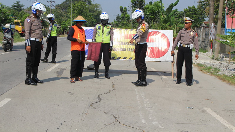 Jelang Mudik Lebaran, Satlantas Polres Bojonegoro Pantau Proyek Perbaikan Jalan