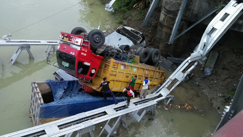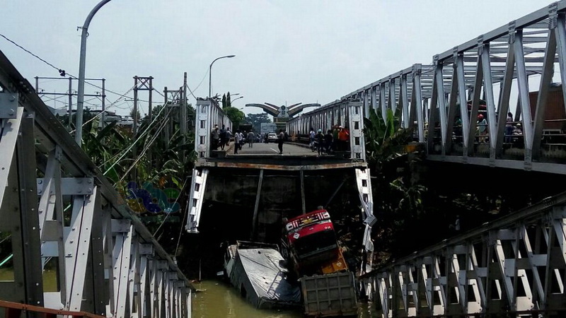 Sementara, berdasarkan identifikasi awal, peristiwa tersebut mengakibatkan satu dump truk, dua truk tronton dan satu sepeda motor turut terjebur ke air.