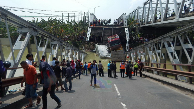 “Saat beriringan dengan kendaraan truk nomor polisi S 8569 UE, saat itulah jembatan patah dan ketiga kendaraan masih berada di sebelah selatan garis jembatan yang patah.” terang Iptu Agus.
