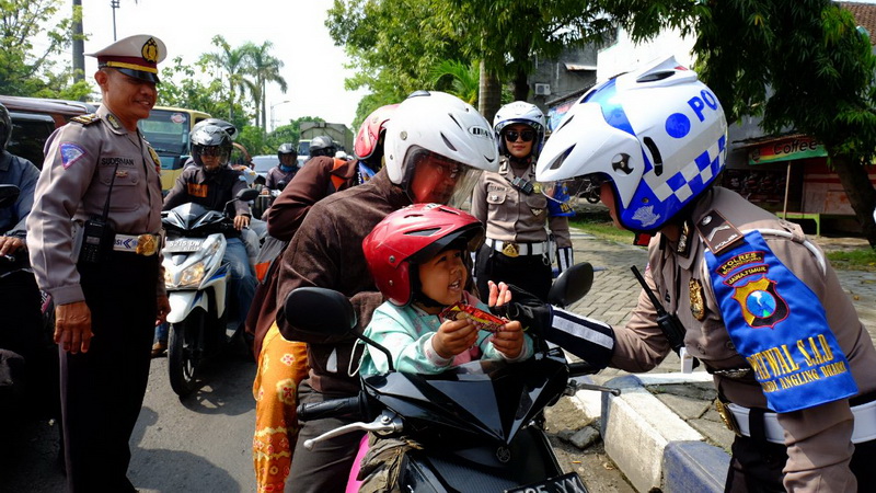 Selain membagi-bagi coklat, dalam aksi tersebut Srikandi Angling Dharma juga memberikan pesan kamtibmas tentang keselamatan berlalu lintas dengan selalu memperhatikan faktor keselamatan dalam berkendara sehingga diharapkan akan meminimalisir adanya potensi kecelakaan. Deiantaranya dengan selalu menggunakan alat keselamatan berkendara serta mematuhi aturan serta rambu-rambu lalu lintas di jalan raya.