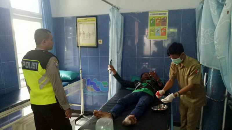 Bojonegoro (Baureno) - Seorang pejalan kaki bernama Marsilan (55), warga Desa Ngemplak RT 016 RW 006 Kecamatan Baureno, alami luka patah tulang kaki kanan dan luka robek pada dahi, setelah di tabrak sepeda motor Yamaha Mio Nopol L 4943OW, yang dikendarai M Yasin (36), warga Desa Sumuragung RT 020 RW 005 Kecamatan Sumberrejo Kabupaten Bojonegoro, pada Senin (23/04/2018) sekira pukul 08.00 WIB pagi tadi, di Jalan Raya Bojonegoro - Babat, turut wilayah Desa Pasinan Kecamatan Baureno Kabupaten Bojonegoro.