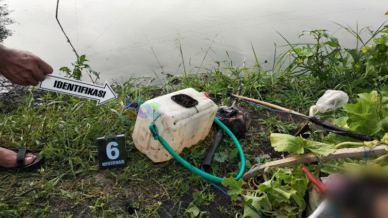 Berdasarkan pemeriksaan di TKP, di sekitar korban terdapat kawat yang mengelilingi tanggul tambak yang terdapat tanaman melon yang berasal dari mesin genset sepanjang 2 meter, ditemukan 2 buah batang pipa paralon sepanjang 20 sentimeter sebagai penyangga kawat, 1 unit mesin genset TG 800 warna merah kapasitas 1.400 Watt.