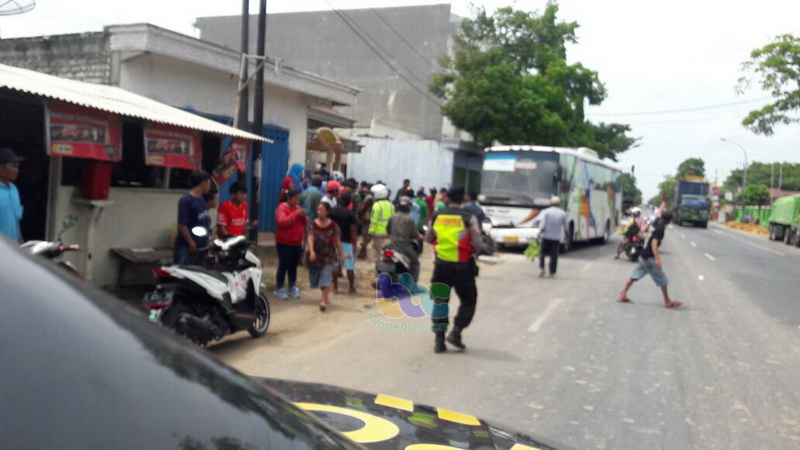 Tuban (Tambakboyo) - Seorang pengendara motor, meninggal dunia di lokasi kejadian setelah sepeda motor yang dikendarainya ditabrak bus Jawa Indah, di jalan raya Tuban - Bulu kilometer 27-28, turut wilayah Desa Sobontoro Kecamatan Tambakboyo Kabupaten Tuban, pada Selasa (24/04/2018) sekira pukul 12.00 WIB siang tadi.