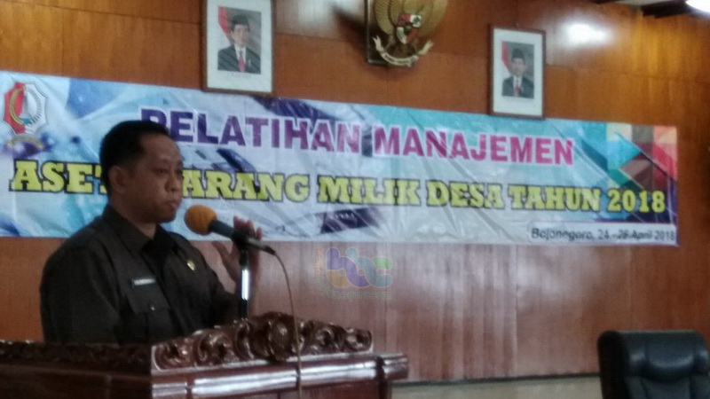 Bojonegoro Kota - Mulai hari ini, Selasa (24/04/2018) hingga Kamis (26/04/2018) mendatang, Dinas Pemberdayaan Masyarakat dan Desa Pemerintah (DPMPD) Kabupaten Bojonegoro, menggelar Pelatihan Manajemen Aset Barang Milik Desa Tahun 2018 di Pendopo Malwopati Pemerintah Kabupaten Bojonegoro.