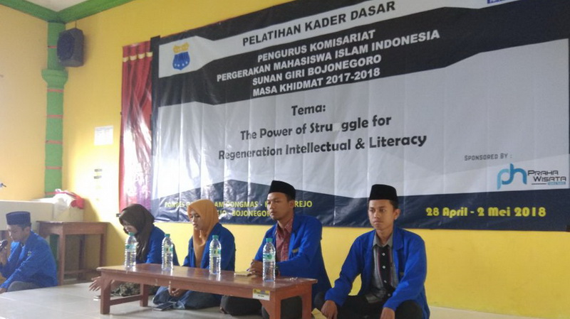 Bojonegoro (Sumberrejo) - Pengurus Komisariat Pergerakan Mahasiswa Islam Indonesia (PK-PMII) Sunan Giri Bojonegoro, mulai Sabtu (28/04/2018) hingga Rabu (02/04/2018), menggelar Pelatihan Kader Dasar (PKD) di Ponpes Darussalam, Dungmas Kedungrejo Kecamatan Sumberrejo Kabupaten Bojonegoro. Kegiatan tersebut dilaksanakan guna meningkatkan basis intelektual dan literasi pada diri setiap kader.