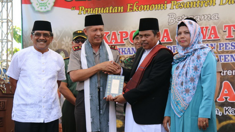 Di akhir acara Kapolda Jateng menyerahkan bantuan alat olah raga dan kitab suci Al-Quran kepada ponpes setempat di dampingi oleh Bupati Blora Djoko Nugroho dan Forkompimda serta Plt Gubenur Jateng yang diwakili Kepala Kesbangpol Jateng serta Direktur Ketahanan Ekonomi Sosial dan Budaya Kementerian Dalam Negeri RI, Drs Lutfi TMA MSi. (teg/imm)