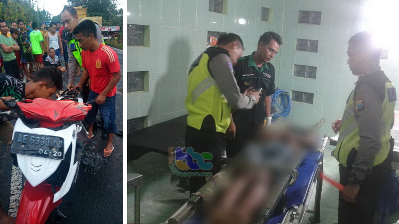 Pada saat yang bersamaan, lanjut Kapolsek, dari arah yang berlawanan atau dari selatan ke utara, berjalan kendaraan mobil boks Daihatsu Grand Max nomor polisi AE 8531 JB, sehingga sepeda motor berikut pengendara yang terjatuh tepat di depan kendaraan tersebut, langsung terlindas.