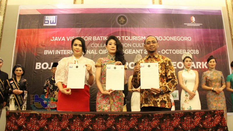 Pj Bupati Bojonegoro Dr Suprianto SH MH, yang hadir dalam acara Java Visit For Batik and Tourism of Bojonegoro Collaboration Culture BWI Internasional Qipao Pageant 2018, tersebut menyambut baik telah dilaksanakannya penandatanganan nota kespahaman (MoU) antara Dinas Kebudayaan dan Pariwisata Kabupaten Bojonegoro dengan Blue White Internasional (BWI) serta dengan House of Martini Suarsa.