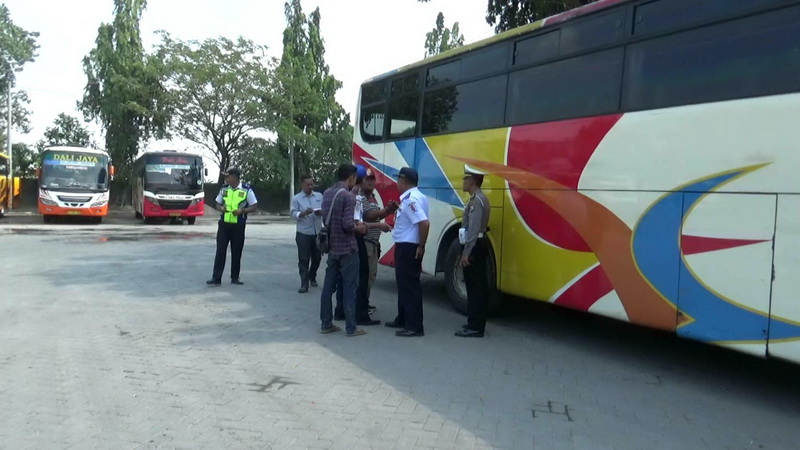 Bojonegoro - Jelang arus mudik lebaran idul fitri 2018, Dinas Perhubungan (Dishub) Kabupaten Bojonegoro pada Senin (04/06/2018) siang, laksanakan pengecekan kelaiakan kendaraan angkutan darat dan bus, di Terminal Rajekwesi Bojonegoro.
