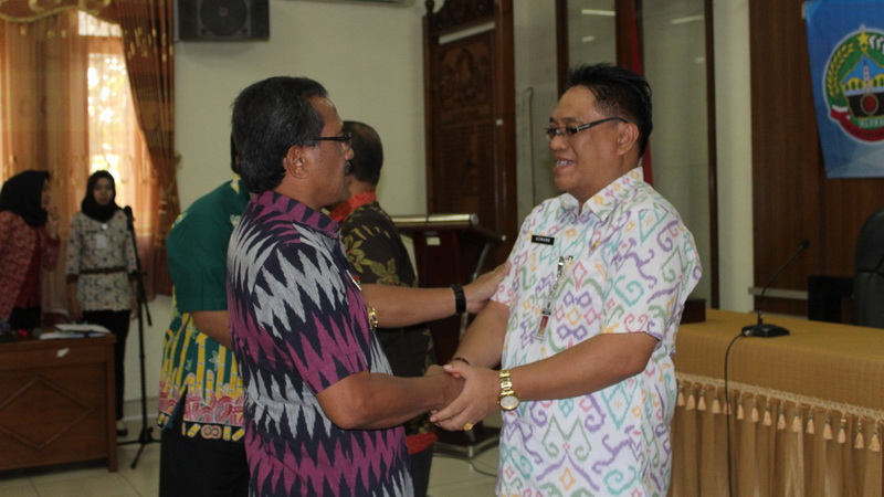 Usai pelantikan lansung dilanjutkan dengan serah terima jabatan dari Sekda lama Drs Bondan Sukarno MM kepada Sekda baru Komang Gede Irawadi SE MSi, di depan Bupati Djoko Nugroho dan disaksikan seluruh tamu undangan.