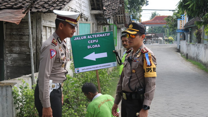 Polres Bojonegoro Pasang Rambu Jalur Alternatif Mudik Lebaran