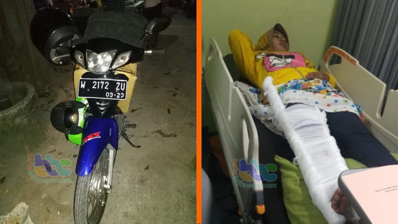 Akibat dari kejadian laka-lantas tersebut, pengendara sepeda motor tersebut mengalami luka-luka, sementara yang di bonceng, juga mengalami luka-luka tanda-tanda patah tulang kaki sebelah kanan.