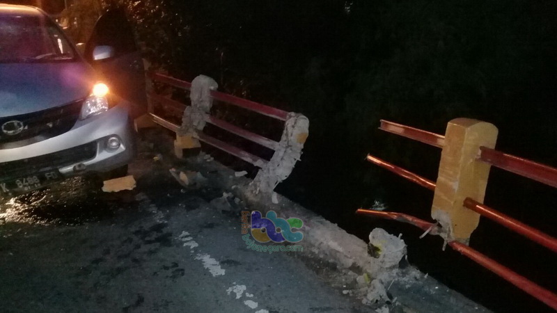 Diduga pengemudi mobil Daihatsu Xenia kurang konsentrasi sehingga tidak dapat menguasai kendaraannya yang akhirnya kendaraan tersebut oleng ke kanan dan menabrak pagar jembatan. Tidak ada korban jiwa maupun korban luka-luka, namun kendaan tersebut mengalami kerusakan material yang cukup parah.