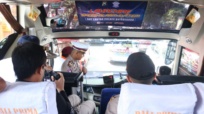 Kapolres Bojonegoro AKBP Ary Fadli SIK MH MSi didampingi Kasat Lantas Polres Bojonegoro AKP Arristianto BS SIK SH MH dan Kepala UPT Terminal Rajekwesi Bojonegoro, Sentot Sugeng Waluyo, saat melaksanakan launching speed alarm system di Terminal Rajekwesi Bojonegoro, kepada awak media ini mengungkapkan bahwa speed alarm system adalah sebuah alat peringatan dini kepada pengemudi bus, dimana apabila saat laju kecepatan bus melebihi ambang batas yang telah ditentukan, maka alarm tersebut akan berbunyi, sehingga diharapkan pengemudi bus akan mengurangi laju kecepatan kendaraan yang dikemudikannya.